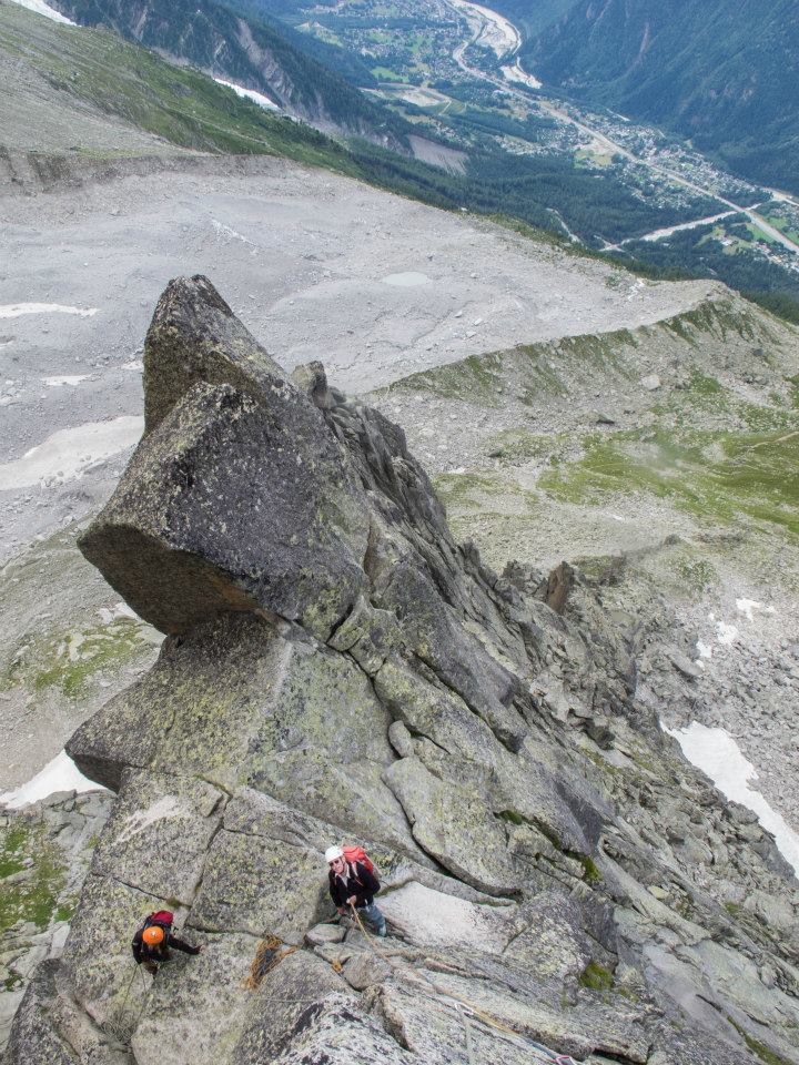 ‘Zen’, dacht ik. ‘Geen les routevinden of zekeringen leggen, maar een les geduld. Waardeer dat je op een graat zit en je favoriete hobby uitvoert, waardeer je gezelschap, waardeer het uitzicht op de Frendo en de Midi en het landschap eromheen’.