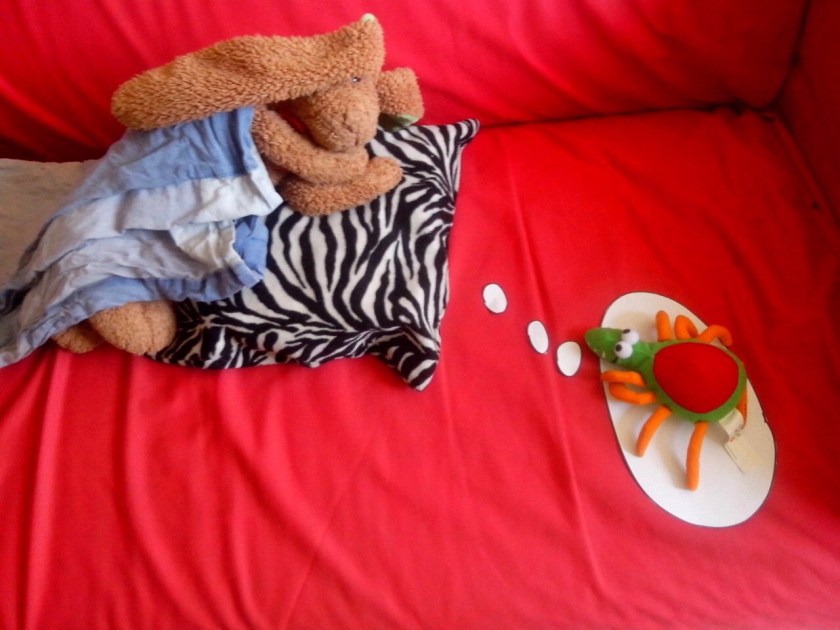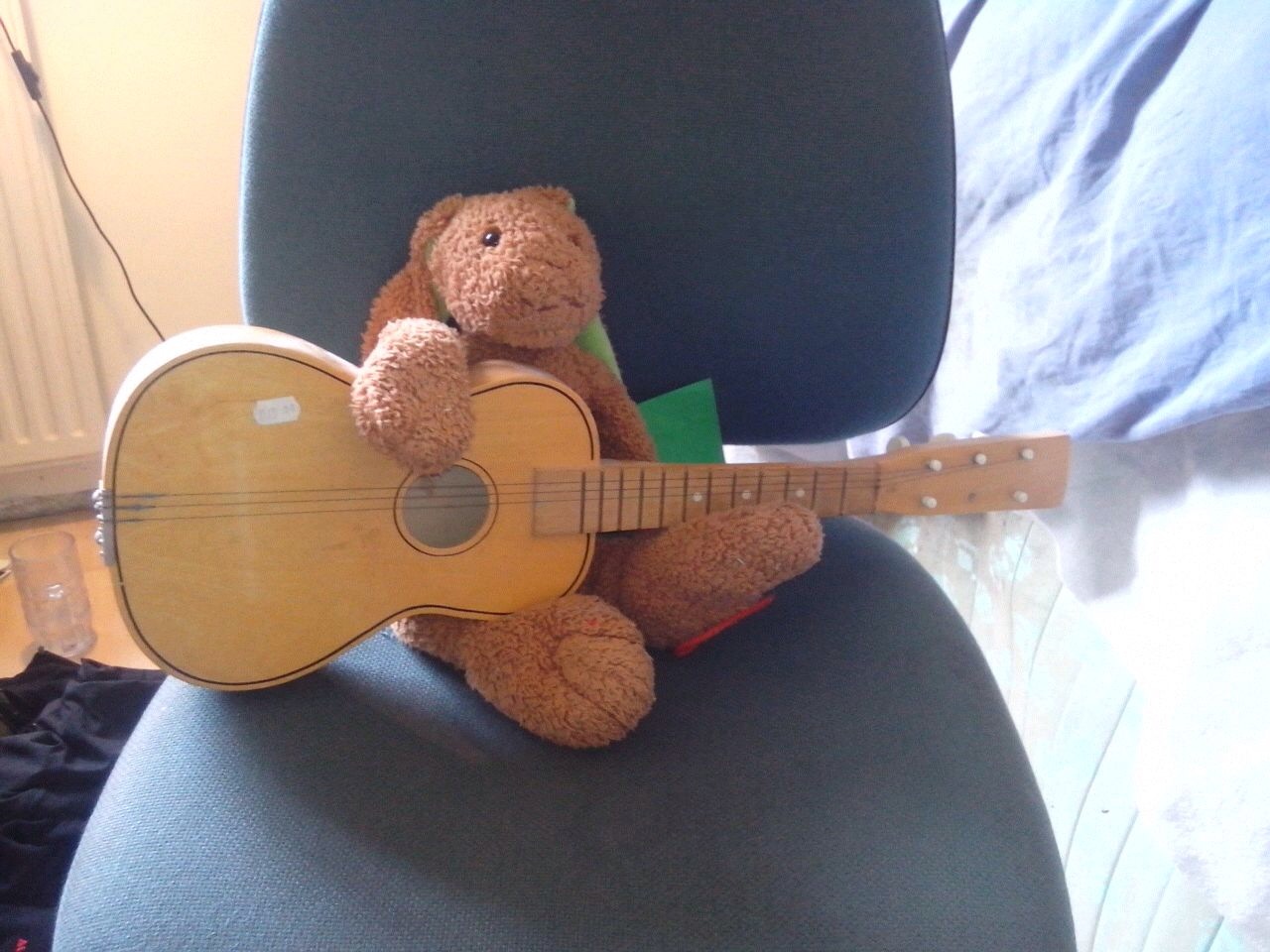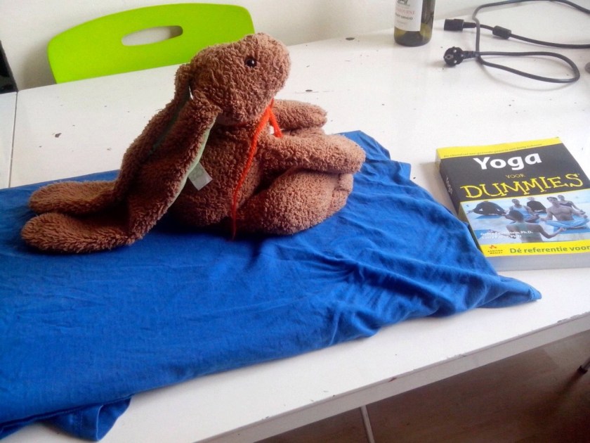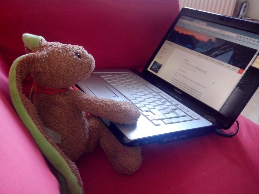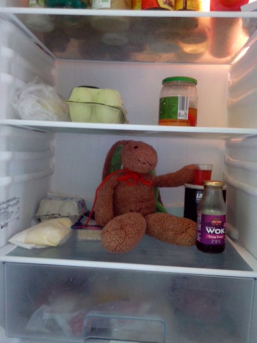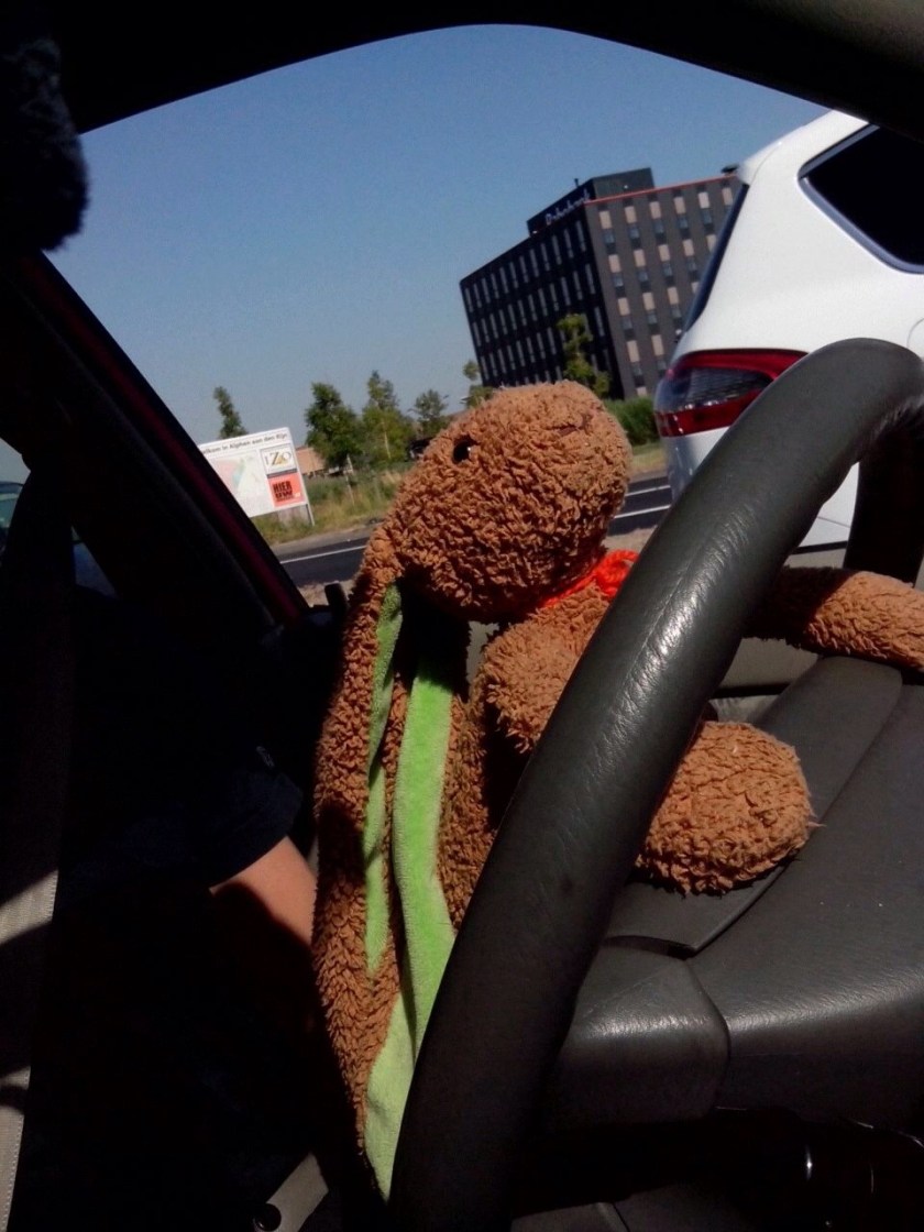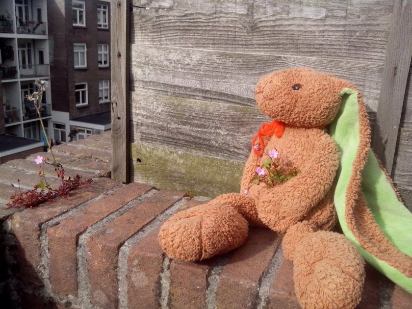 In een zoveelste bericht zie ik Haas met een gitaar op een bureaustoel. Het gaat me inmiddels vrij ver, dat avontuur van Haas. Ik denk terug aan de dagen dat Haas geen adem kreeg onder de dekens of gedurende de nacht naar het voeteneind werd geschopt. Ik voelde weinig bij het geluid van Haas, vallend van het bed op de houten kamervloer, en als ik niet in twee keer raak greep naar zijn oren om hem terug het bed in te tillen, nam ik nooit de moeite om even het licht aan te knippen en Haas van de grond te halen. Haas had een hard bestaan, maar alleen omdat ik dacht dat Haas een knuffelhaas was.