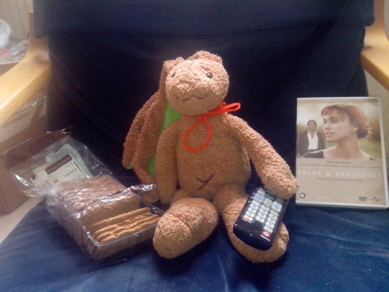 Ik leer in korte tijd meer over Haas dan in al die jaren daarvoor. Want in het volgende bericht, nog geen week later, zie ik Haas aan de speculaas, een afstandsbediening in zijn poot, zomaar even aan een vrijdagavondfilm.