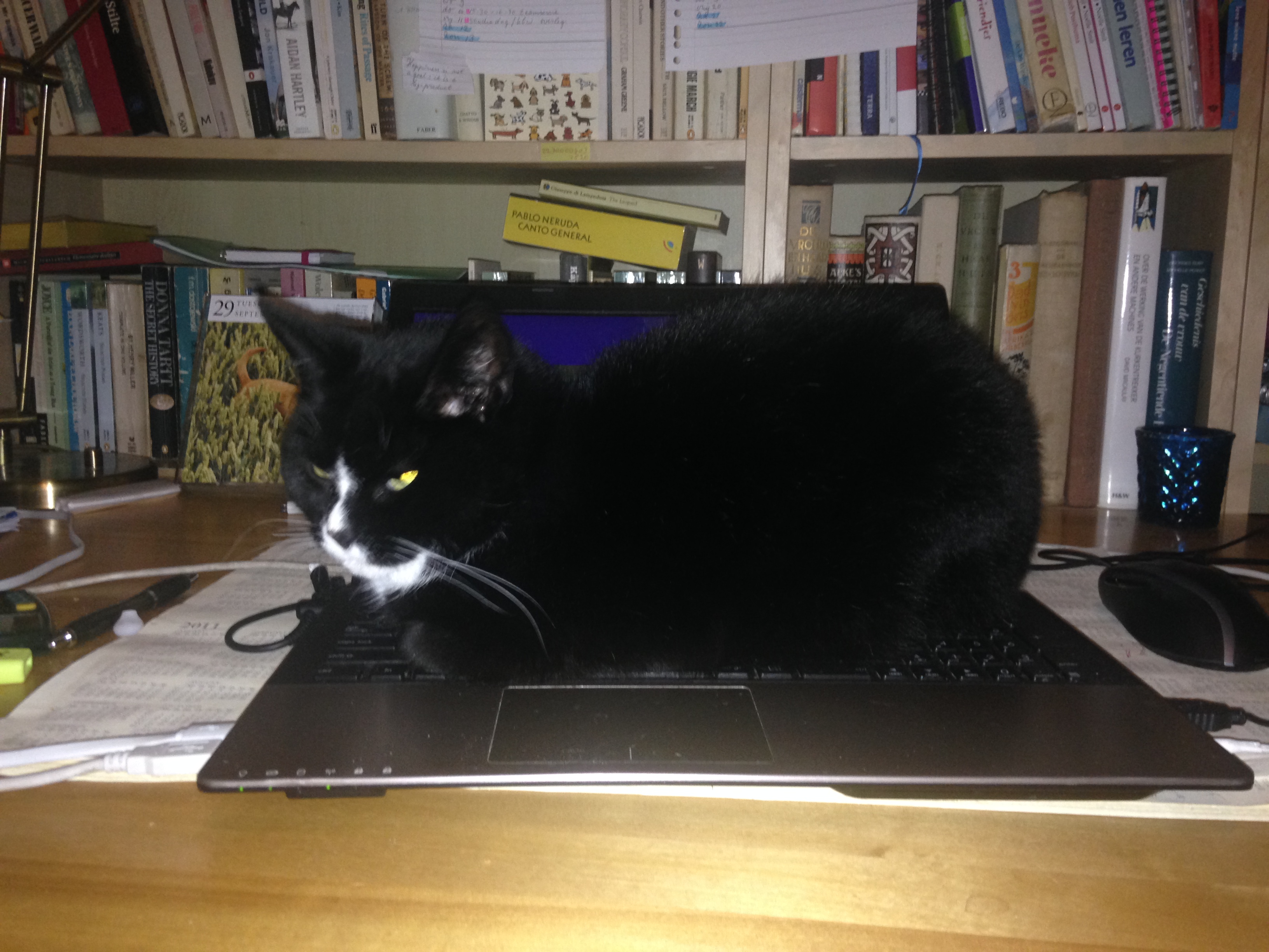 Harig monsterDe confrontatie met je eindeloos lieve en grappige moeder en je slimme vader die een kerstmanbaard heeft laten staan en nu nog drie keer slimmer lijkt. En je zus, die tegenover je zit met een kunstzinnige knot midden op haar hoofd, stuiterend op het ritme van haar hak-op-de-tak levensanalyses, en je broer die nog altijd floreert als het stabiele gezinslid. En de kat, natuurlijk, natuurlijk de kat. De zwarte miauwregent, het scharminkel Josephine, de sterk gekrompen pluizenbol die haar leeftijd miskend.