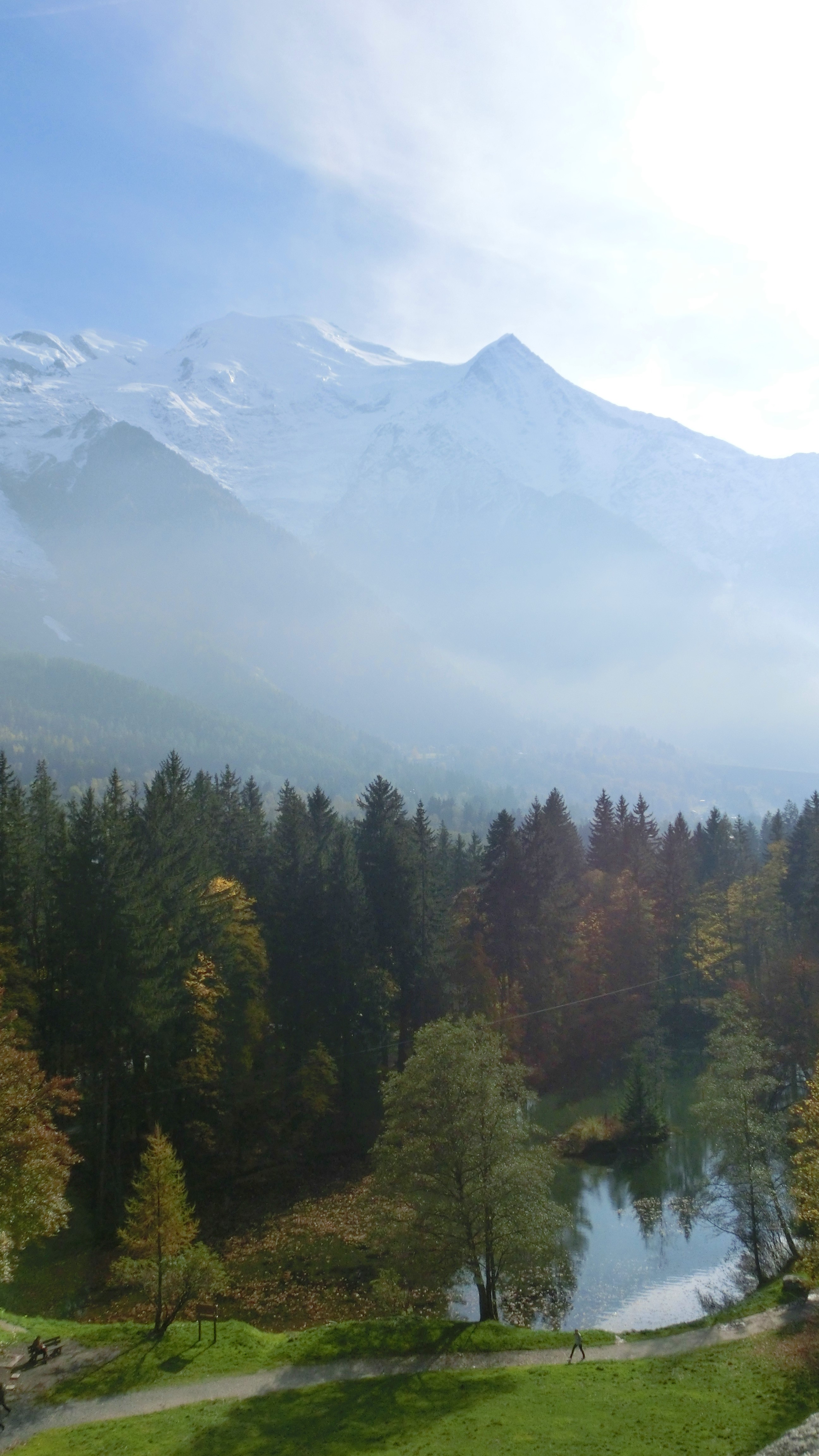 Lac de Gailland is een meertje net binnen het dorp. ‘s Zomers zou de Mont Blanc erin weerspiegelen, maar nu drijven er rode en oranje blaadjes op.