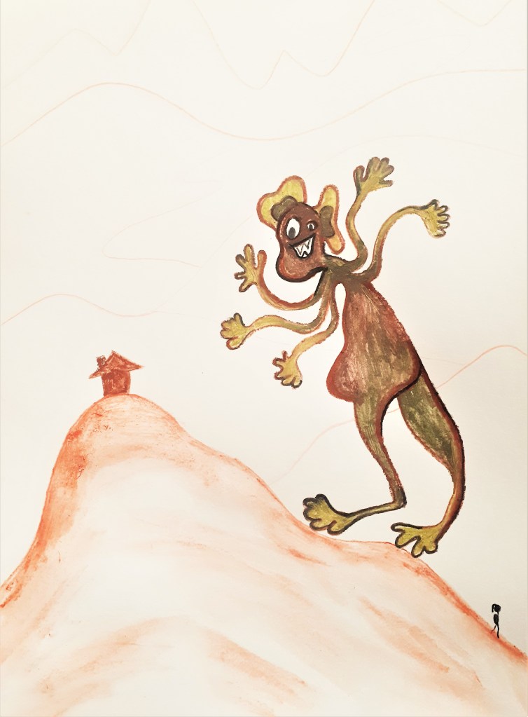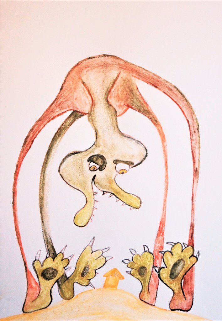 Sinds gisteren heb ik zin om het virus een gestalte te geven. Ik denk aan een vleermuizige bezoeker van de vismarkt in Wuhan, een mysterieus mannetje met lange jas, hoed en grote bruine reiskoffer, dat daarna overal in de wereld opduikt (wat een vreemd figuur, denken mensen). Of ik denk aan een reislustig blubbermonster van bruine kleuren en veel te veel armen, aangetrokken door de ouderen en zwakken, dat zwabberend uit de kraan of het putje van de zorginstelling stroomt en zich naast hen in bed flaneert.