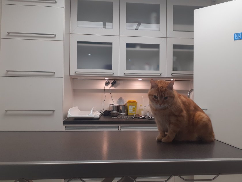 Met een overreden kat op de achterbank reden we daarom via de Dodekippenkattenweg richting de dierenarts, dwars door het uitgestorven coronaland, met een schuin oog op de ademhaling van het grommende slachtoffer. Hij gedroeg zich erg slecht bij de dierenarts. Hij stribbelde tegen, blies en haalde zo vaak uit dat ik me gedwongen zag om me voor hem te excuseren. Maar goed, hij had pijn. Ze spoot er noodgedwongen een dubbele dosis medicatie in, waarna de koning van La Vachette als een lapje op de behandeltafel lag.