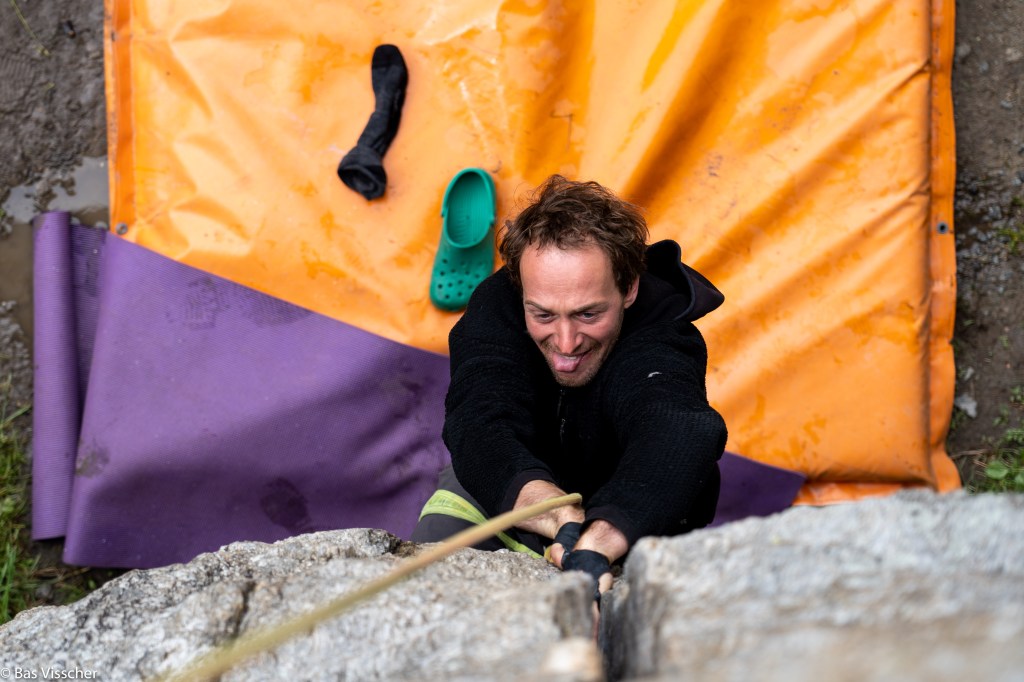 Afgelopen week gingen Thibault en ik op een kleine spleetklimstage en daar was ook Bas Visscher: een spleetklimmer met de ervaring en kennis om ons de hele bedoeling correct aan te leren. Naast heel gezellig (ik herhaal héél gezellig, want Bas is héél gezellig) was het ook lastig. Spleetklimmen voelt, met name in het begin, als systematisch wanhopig ledematen achter een stuk rots klemmen. Waar ervaren spleetklimmers zich als klittenband in de scheur haken, leg ik de verkeerde verklemmingen op de verkeerde plekken of voel simpelweg niet hoe mijn ledemaat geacht wordt in de spleet te blijven hangen onder belasting van mijn lichaamsgewicht. Op de sporadisch solide jam na verbruik ik al mijn (wils-)kracht razendsnel om toch maar een soort van in de wand te blijven.