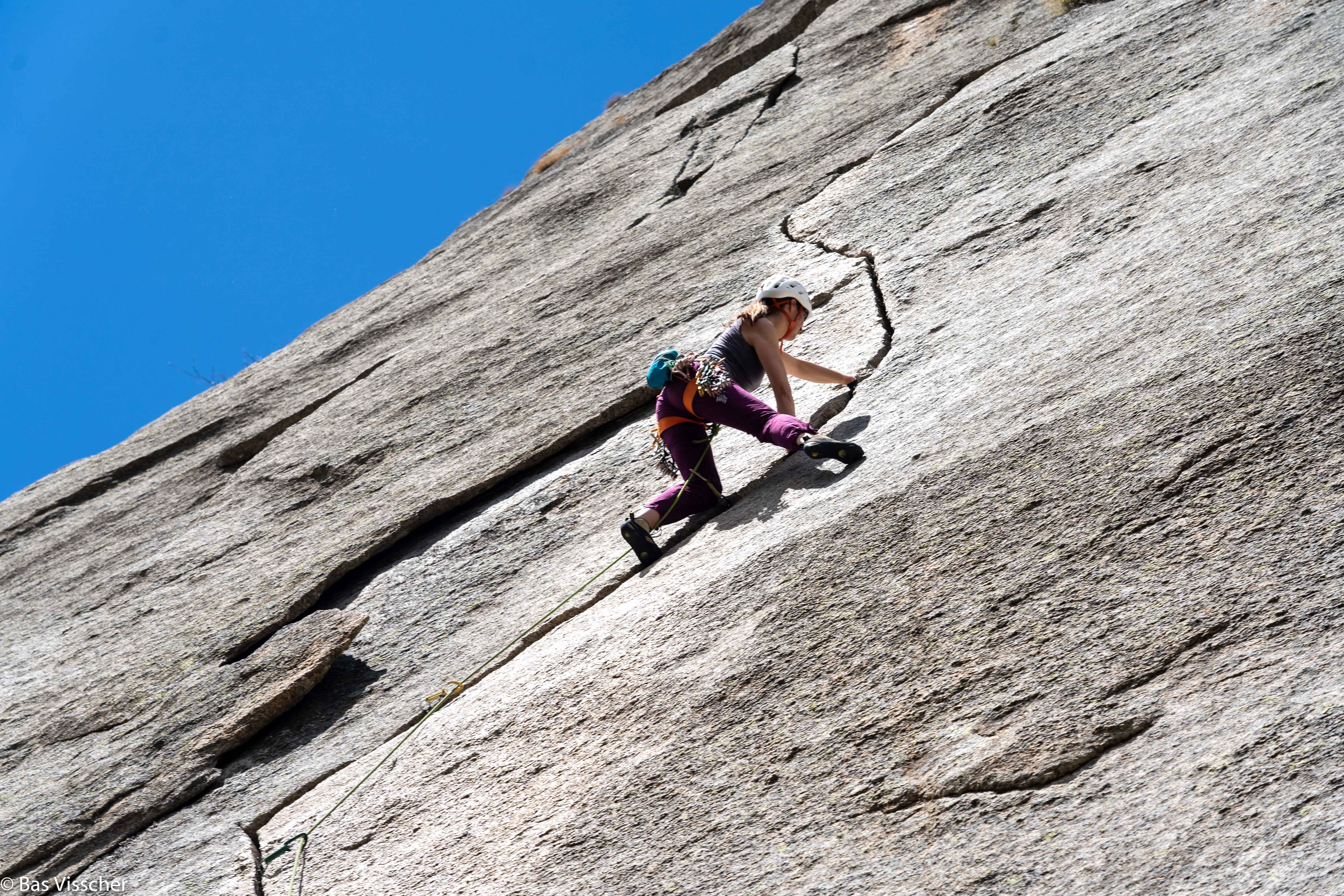 Bas, bedankt voor de tips, de foto’s en motivatie, zonder jou waren Thib en ik wanstaltig slechte spleetklimmers gebleven (het gaat inmiddels iets beter). Wat hoop ik op een dag het niveau te bereiken om samen wat bescheiden (berg?)scheuren aan te vallen. Ik zal er hard aan werken.