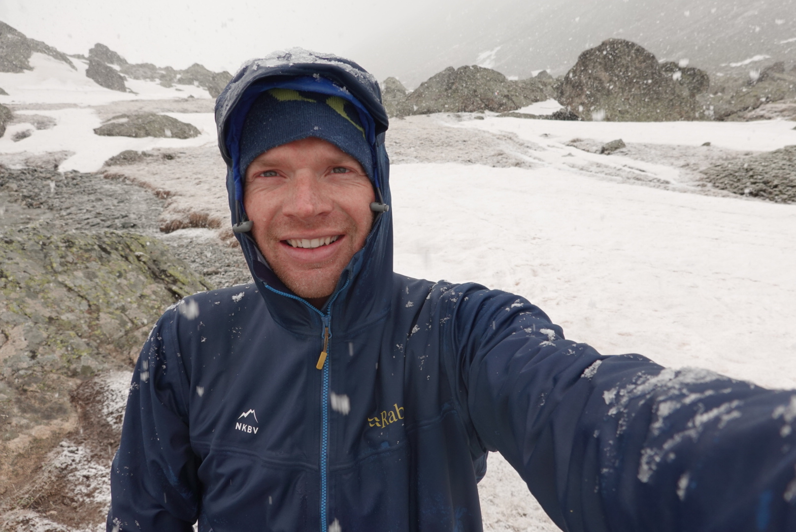 Voet voor voet ga ik verder door de diepe poeder. Vanmorgen vertrok ik bij mijn busje, met het doel om te trainen en minstens 1 of 2 uur sneller te zijn dan de aangegeven 5 uur die voor de route naar de Pavé hut staat. Ik passeerde een groep van 5 toerskiers, die nog een vrolijke groepsfoto maakten in de regen. Zij leken onderweg naar de Refuge Adèle Planchard. Het waren de laatste mensen die ik tegen kwam. Naarmate ik hoger kwam veranderde regen in sneeuw, en verdween het pad onder een dikke witte laag sneeuw. Nu ben ik mezelf aan voortploeteren door de poeder, de structuurloze sneeuw die diep in mijn schoenen naar binnen dringt en mijn sokken nat maakt. Ik ben mijn voornemen om sneller te zijn dan de gidsjestijd al lang uit het oog verloren en ik vraag mezelf steeds meer af of ik überhaupt in de hut ga aankomen.