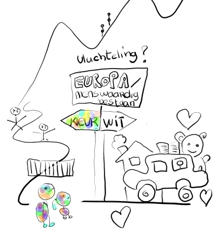 Thibaults peetoom kwam op bezoek en wilde ons graag mee uit eten nemen. Omdat pizza’s in Italië vaak goedkoper en lekkerder zijn (want Italiaans), opperde Thibault om een restaurant over de grens te zoeken. Die ligt op een kwartiertje van ons dorp. Samen met de vrouw van de peetoom stapten we in een nette rode familieauto, Thibault en ik als kinderen op de achterbank. Zo reden we de berg op en de grens over. Daar zag ik iemand vlak naast de berm met een verrekijker en tikte Thibault aan. De man richtte het apparaat op de bergflanken van de vallei van Montgenèvre, de bossen en kunstmatig ondergesneeuwde pistes in het schemerdonker. Als hij bergschoenen aan had gehad, een beige broek en een hoed, dan hadden we kunnen geloven dat hij zocht naar marmotten, een wolvenroedel of een verloren schaap. Als het mijn vader was geweest, dan had hij misschien ondanks het donker nog de lagen in het gesteente willen onderscheiden. Maar de man droeg een donkerblauwe broek en een donkerblauwe jas en zocht naar vluchtelingen. …